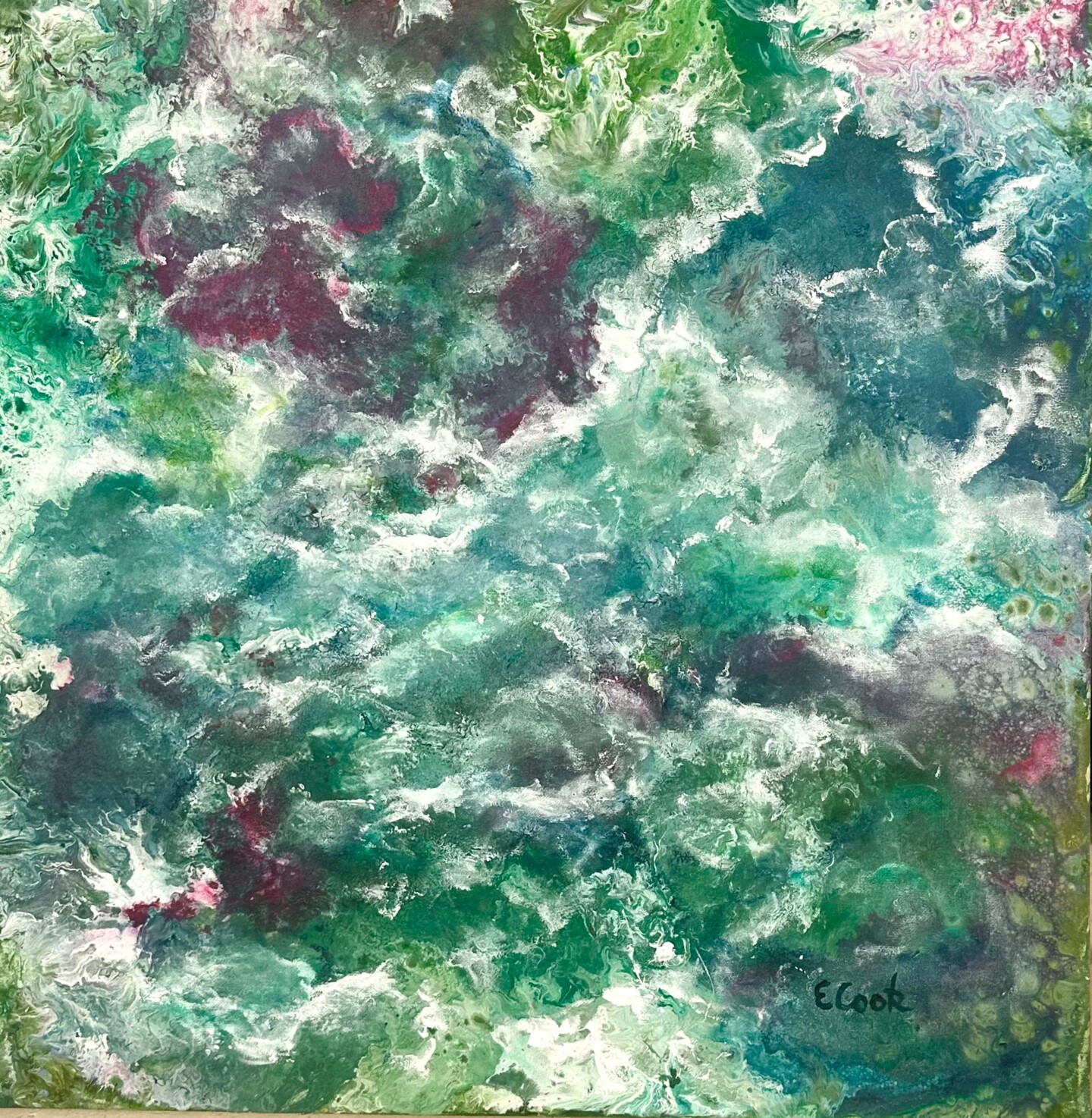 Acrylic painting evoking a floral theme